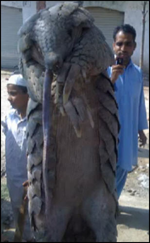 23일 동영상 사이트 유튜브에 공개된 사진을 보면 웬만한 성인 남성보다 큰 덩치에 온몸이 비늘로 덮혀 있으며 특히 거대한 발톱을 가진 앞발이 눈에 띈다.