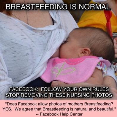 지난 15일(현지시간) 유명 블로거인 지나 크로슬리-코코란은 “18개월 된 딸에게 모유 수유하는 사진을 페이스북에 올렸는데 강제로 삭제 당했다.” 면서 “3일 동안 페이스북 사용도 정지 당했다.” 며 분통을 터뜨렸다.