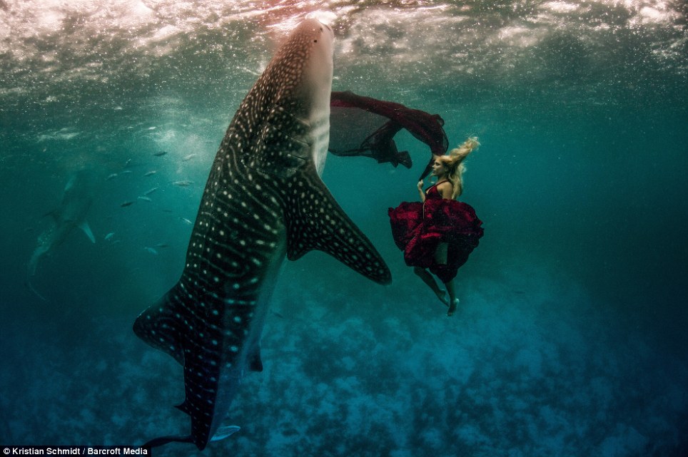 전문 모델들과 독특한 작품을 만든 미국의 사진작가 숀 하인리히(41)와 크리스찬 슈미트(35)는 “고래상어는 우리에게 전혀 위협적이지 않았다. 오히려 사람들과 친해지기도 했다.”고 당시를 회상했다.
