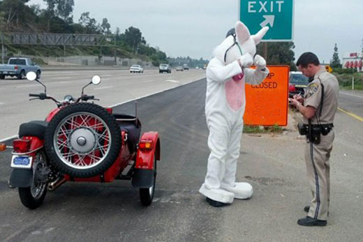 화제의 ‘토끼 탈선’ 사건은 부활절을 앞둔 지난달 30일(현지시간) 미국 샌디에이고 인근 한 도로에서 발생했다. 이날 신원이 알려지지 않은 한 남자는 자선 행사에 가기위해 토끼 옷을 입은 채 오토바이를 타고 도로에 나섰다.