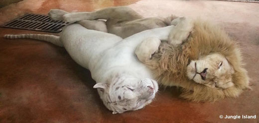 현지언론은 “이들 사자와 호랑이에게 ‘맹수의 왕’이라는 타이틀은 의미가 없는 것 같다.” 면서 “사랑하는 연인 사이에서 ‘라이거’가 태어날 지도 모르겠다.”고 보도했다.