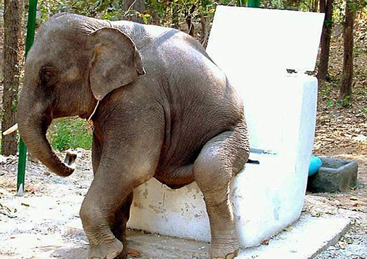 과학자들은 코끼리 처럼 거대한 동물과 강아지나 염소 등 작은 동물의 소변 행태를 비교 분석했다. 그 결과 코끼리는 비록 거대한 방광을 갖고 있지만, 길고 넓은 요도를 갖고 있어 소변 속도가 작은 동물의 속도에 비해 빨랐다. 결국 그 속도는 중력의 영향을 받아 더 상승한다는 점을 발견했다.