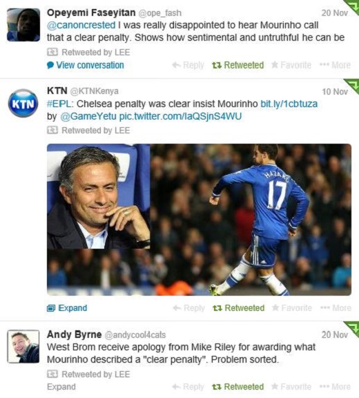 BBC 등 많은 현지 매체들이 이 뉴스를 비중있게 다뤘으며 이 소식을 들은 팬들은 SNS상에서 “무리뉴, 심판협회장이 사과하는데도 PK가 맞다고 할 수 있나?” “심판협회장도 사과를 하는데, 무리뉴 당신도 사과해야되는 것 아닌가?”라는 식의 반응을 보이고 있으며 첼시 구단측에서는 이에 대해 공식적인 반응을 보이지 않고 있는 상태다.