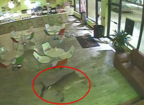 사진: 요구르트 가게에 들어온 불청객 사슴 (유튜브 캡처)