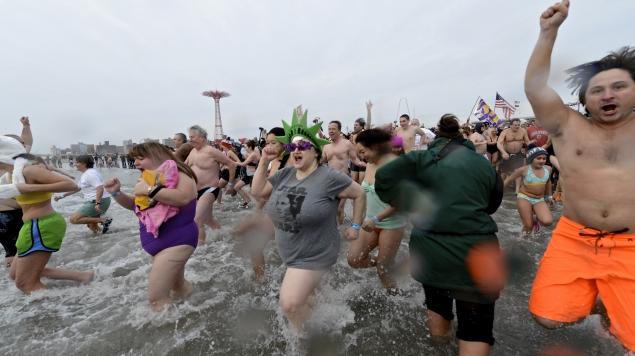 1903년부터 매년 개최된 전통을 가지고 있는 뉴욕시 ‘코니아일랜드 북극곰 클럽’의 겨울 바다 수영 행사는 이날도 연인과 가족들이 참여하여 장사진을 이루었다. 이날 육상의 기온은 영하 0도 가까이 떨어졌으나 바닷가 수온은 영상 5도를 기록했다고 언론은 전했다.
