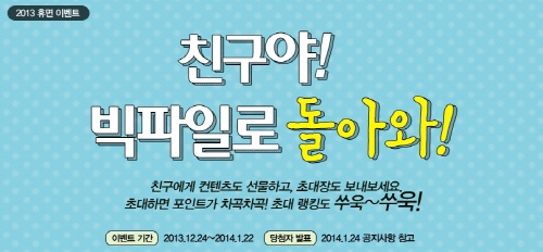 이와 함께 같은 기간 중 최근 3개월에서 6개월간 빅파일 접속 내역이 없는 휴면 회원을 대상으로 ‘룰렛 이벤트’도 진행된다.