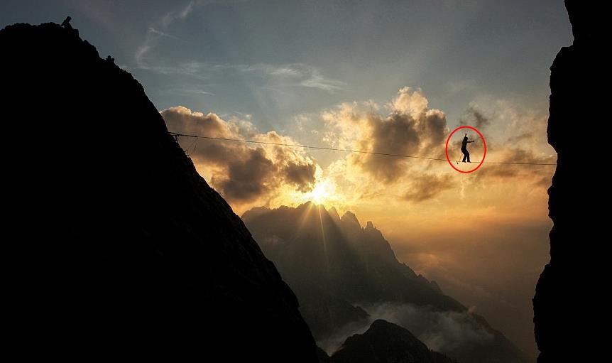 영국 일간지 데일리메일의 12일(현지시간) 보도에 따르면, 사진 속 용감무쌍한 주인공은 아크로바틱 퍼포먼서인 플로리안 에브너이며 이를 카메라 렌즈에 담은 이는 역시 ‘한 용기’ 자랑하는 모험 전문 사진작가 마르틴 루거다.