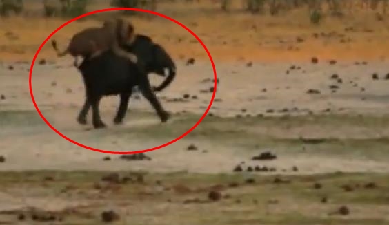 동영상을 보면 먼저 첫 번째 사자가 어린 코끼리의 뒤로 살금살금 접근해 목덜미를 물며 기선을 제압한다. 코끼리는 목을 흔들며 사자를 떼어 놓으려 노력해보지만 곧장 두 번째 사자까지 달려들자 모든 것을 포기한 듯 땅에 주저앉고 만다.