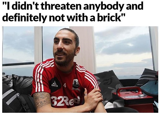 위 제목은 21일 영국 현지 및 한국의 다수 스포츠매체에서 기사화해서 스포츠 팬들이 읽은 기사 제목이다. 그러나 위와 같은 일은 발생한 적이 없는 것으로 보인다. ‘벽돌로 동료를 위협했다’고 보도된 치코 플로레스 본인의 말과 당시 현장에 있던 스완지 관계자의 말에 의하면 말이다.