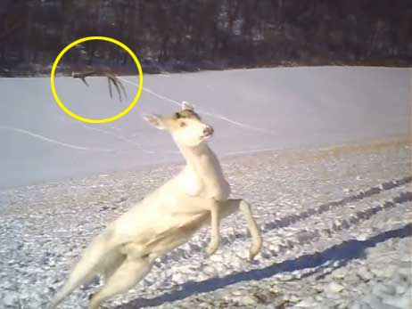 22일 영국 데일리미러에 따르면 영상 속 사슴은 최근 미국 위스콘신주(州)의 한 설원에서 샤론 서클라라는 여성이 세워둔 카메라에 촬영됐다.