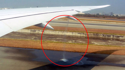지난 19일(현지시간) 태국 방콕발 노르웨이 오슬로행 노르웨지안 항공기가 이륙 중 날개 부근에서 연료가 줄줄새는 황당한 사고로 운항이 중단되는 사고가 발생했다.