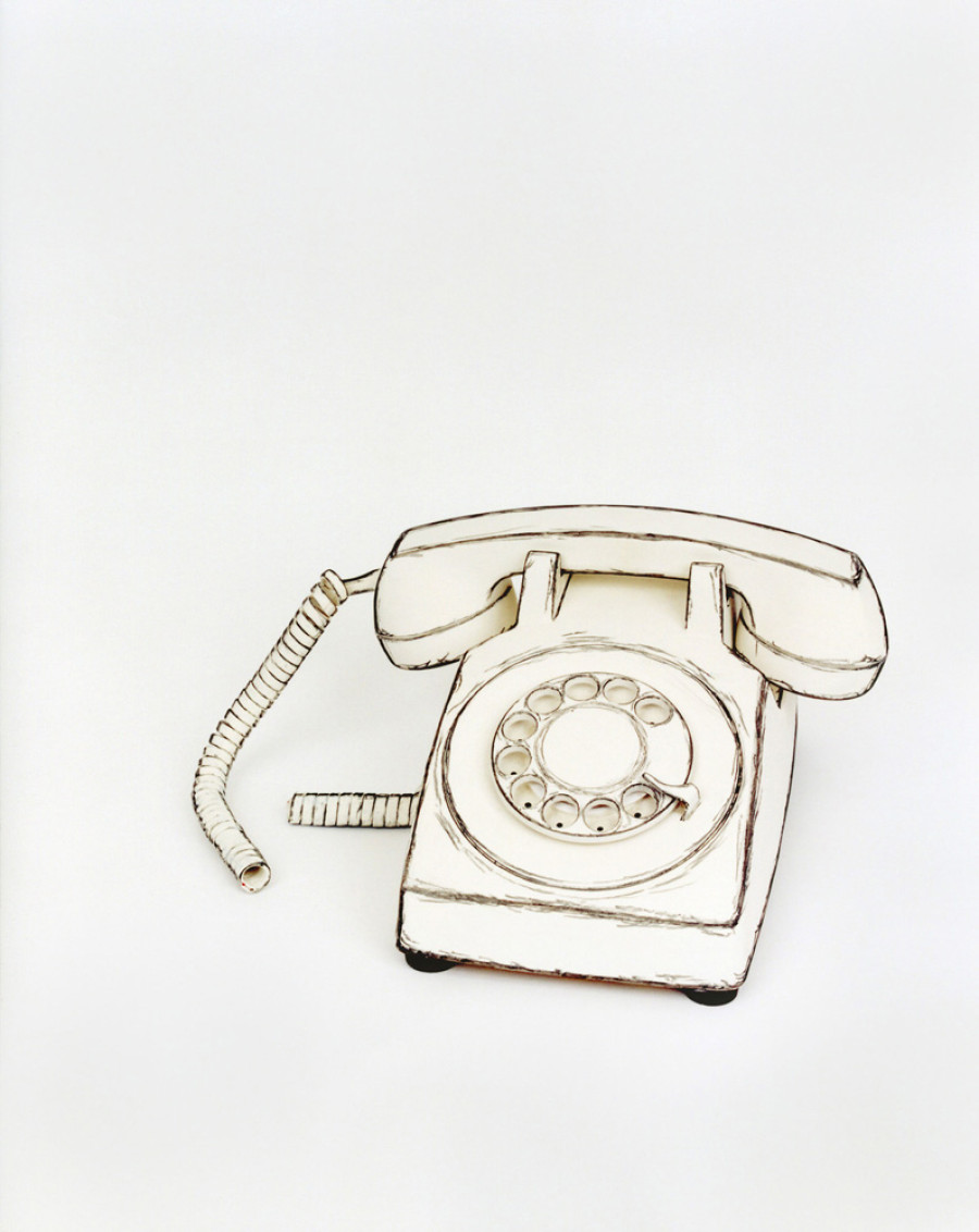 사진 속 사물은 마치 흰 종이에 새까만 목탄으로 오래된 다이얼 방식의 전화기나 투박한 기계식 카메라 등을 그려놓은 듯하다.