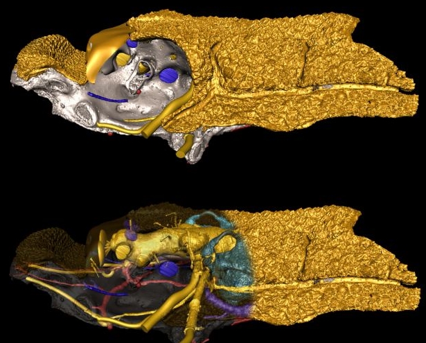 웁살라 대학 연구팀은 캐나다 북부 지역에서 발견된 로문디나의 화석을 ‘유럽 싱크로트론 방사광 시설’(ESRF, European Synchrotron Radiation Facility)로 가져와 복원을 진행했다. 두개골 내부구조를 엑스선을 통해 영상화하는 방식으로 최종 완성된 로문디나의 모습은 척추동물들의 초기 구강 골격을 여실히 보여준다.