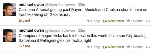 많은 축구 팬들이 명승부를 기대하고 있는 가운데, 잉글랜드의 스타 스트라이커였고 현재는 축구해설가로 활동하고 있는 마이클 오언이 “맨시티가 바르셀로나를 이길 수 있다”는 발언을 그의 공식 트위터 계정에 남겨 팬들의 관심을 주목시키고 있다.