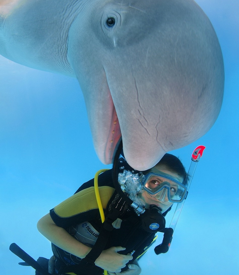 스노우볼은 몸길이 4m의 거구로 물속에서 마주치면 위압적일 것 같지만 실상은 전혀 그렇지 않다. 사람을 잘 따르며 특히 카메라 렌즈를 너무 좋아해 심지어 큰 입으로 맛보기(?)까지 한다. ‘셀카’ 욕심도 강해서 함께 촬영 중인 잠수부보다 좋은 자리를 차지하려 완력(?)을 사용하는 모습은 폭소를 유발한다.