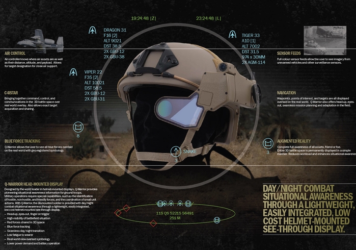 영국 일간지 데일리메일의 19일(현지시간) 보도에 따르면, 해당 제품의 이름은 ‘Q-워리어 헬멧(Q-Warrior helmet)’으로 유럽 최대 항공방위산업체인 영국 ‘BAE 시스템즈’사가 개발했다.