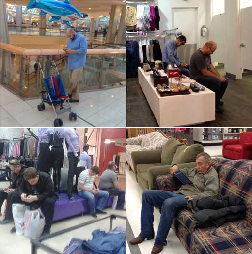 일본 매체인 로켓뉴스 24는 최근 해외 웹사이트를 통해 주목받고 있는 여자의 쇼핑을 기다리는 남자들의 모습을 소개해 눈길을 끌고 있다. 소개된 여러 장의 사진은 이들 남성이 아내 혹은 여자친구와의 쇼핑에서 각양각색으로 기다리는 모습이다.