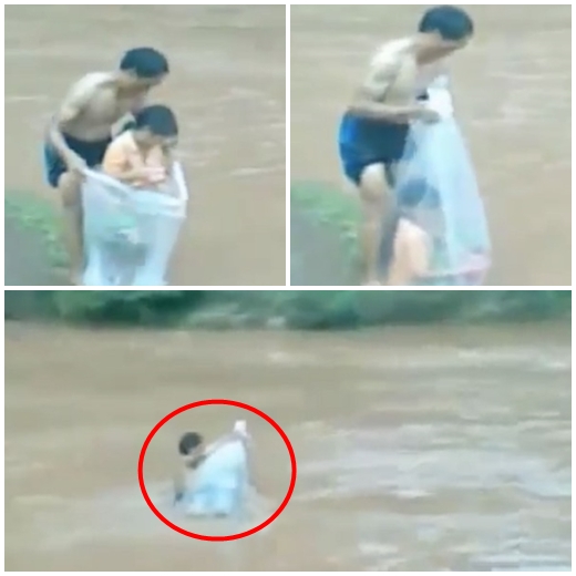 영상 안의 남성은 대형 비닐 봉투 안에 아이를 넣고 거친 소용돌이가 이는 강물 속을 헤치고 나간다. 본인 목숨도 위험한 상황이지만 그보다 아직 많은 것을 배우고 미래를 준비해야하는 아이들에 대한 책임감이 더 큰 듯하다. 그는 이런 방식으로 몇 번이나 강과 육지를 오고가며 한 학급에 해당하는 아이들을 모두 등교시켜냈다.
