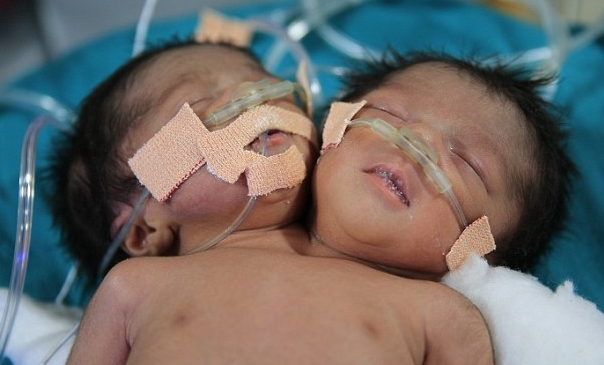 인도 북부 하리아나 주(州) 소피파트 시 시그누스 제이케이 힌두 병원에서 지난 3월 12일(현지시간) 제왕절개 분만으로 태어났던 쌍둥이 자매는 두 개의 머리, 두 개의 목을 지녔지만 몸을 비롯한 심장, 폐, 위장 등의 장기를 공유하고 있었다.