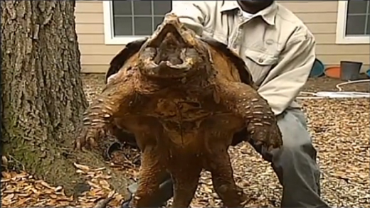 머리 크기만 미식축구공만한 이 악어거북의 몸길이는 4피트(약 1.2m) 정도. 이 악어거북은 커다란 몸집에도 불구하고 무리하게 배수로를 지나려다 몸이 끼인 것으로 알려졌다.
