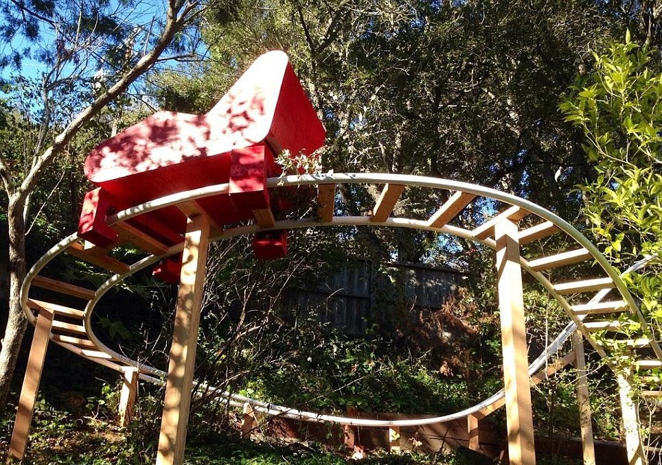 샌프란시스코에 사는 윌 펌블(50)은 최근 자신의 집 뒷마당에 길이 약 55m에 달하는 롤러코스터를 만들었다.