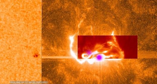 해당 폭발은 ‘태양 플레어’ 등급 중 가장 높은 동급인 ‘X급’으로 NASA 태양활동관측위성(Solar Dynamics Observatory), 고에너지 태양 영상 관측 위성(Reuven Ramaty High Energy Solar Spectroscopic Imager), 태양탐사위성 아이리스(IRIS, Interface Region Imaging Spectrograph) 등의 5개의 관측 장비로 지난 3월 29일 동시에 촬영된 것이다.
