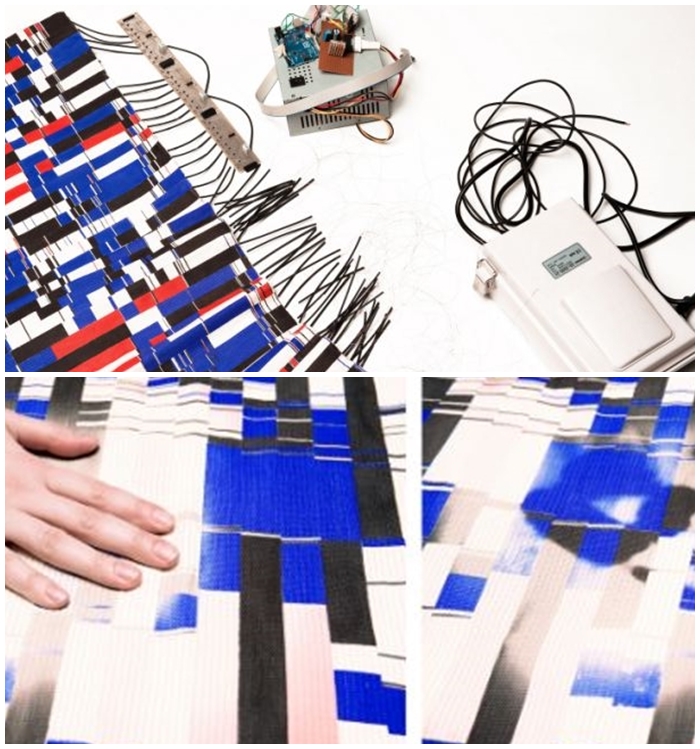 이후 그녀는 IT 전문가, 엔지니어들과의 협력 작업을 통해 니크롬 와이어를 전기전원이 공급되는 마이크로 컨트롤러에 연결한 뒤 일정 열과 압력이 가해지면 색깔 패턴이 변화하는 ‘전자 섬유’로 개발시키는데 성공했다.