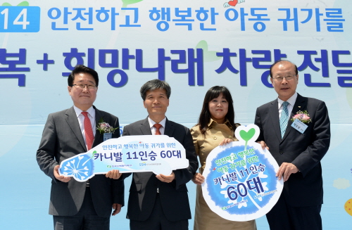 한수원은 지난 27일 오전 올림픽공원 평화의 광장에서 조석 사장을 비롯한 자원봉사자 임직원과 한국사회복지협의회(회장 차흥봉) 및 지역 아동센터 관계자와 어린이 등 200여 명이 참석한 가운데 ‘2014 행복더함 희망나래 차량 전달식’을 갖고 지역 아동센터 어린이들이 이 차량을 이용해 꿈과 희망을 마음껏 펼칠 수 있기를 기원했다.