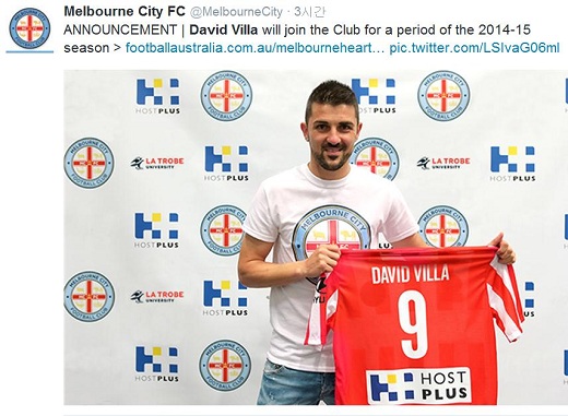 그 이름 마저 ‘멜버른 하트’에서 ‘멜버른 시티’로 변경하는 멜버른 시티 구단 측은 5일 구단 홈페이지를 통해 다비드 비야의 사진과 함께 “다비드 비야가 2014/15 시즌의 10~12월을 멜버른 시티에서 보낼 것”이라며 “훈련은 물론 현대 A 리그에도 나설 것”이라고 보도했다.