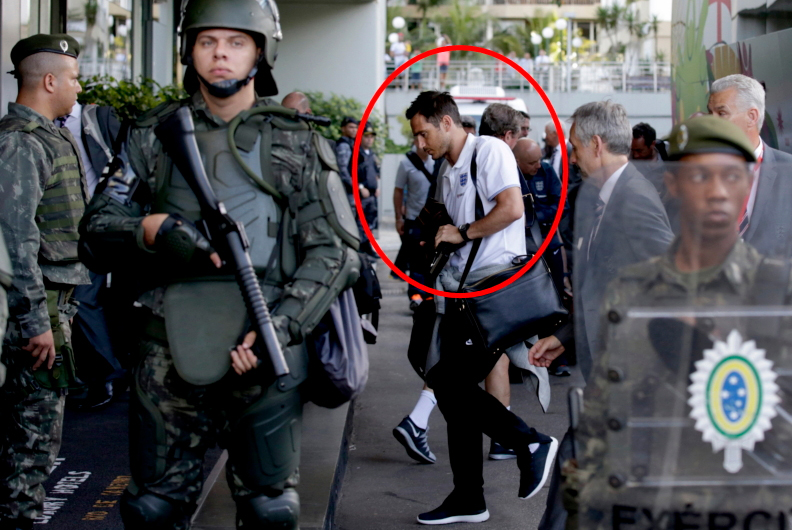 지난 8일, 유명선수들이 대거 포진한 영국 국가대표팀은 ‘로보캅’을 연상케하는 브라질 군 경찰의 삼엄한 경호를 받으며 리우데자네이루의 사오 콘라도 인근 호텔 로비에 모습을 드러냈다.