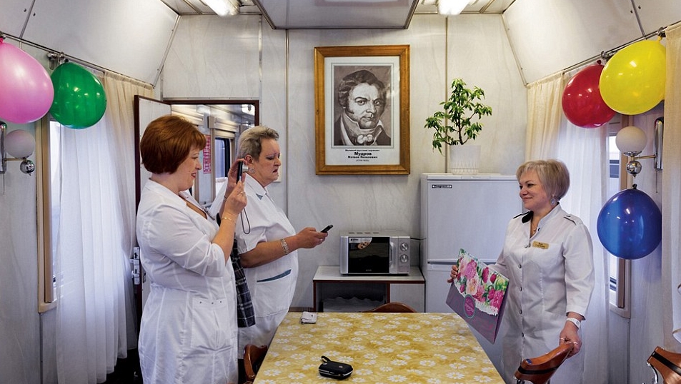하지만 낭만만 있는 것은 아니다. 동쪽과 서쪽이 7,000㎞, 남쪽과 북쪽이 3,500㎞, 총 면적은 650만㎢에 달하는 얼음대륙 시베리아 한 복판에 거주 중인 이들에게 열차는 생계수단이자 ‘삶의 젖줄’이며 동시에 아픈 몸을 치료하고 생명을 구하는 ‘병원’이기도 하다.