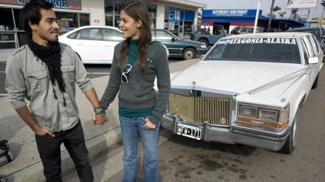 6년째 사귀고 있는 루카스 카르데나스와 플로렌시아 브라토비치는 2012년 아르헨티나 파타고니아에서 북미를 향해 리무진에 시동을 걸었다.