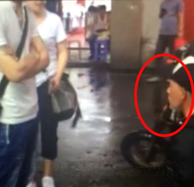 이에 해당 노인은 비가 오는 거리에서 우산도 쓰지 못한 채 무릎을 꿇고 사죄해야 했다. 당시 주변에는 행인들이 많았지만 어느 누구도 이 여성을 말리지 않았다.