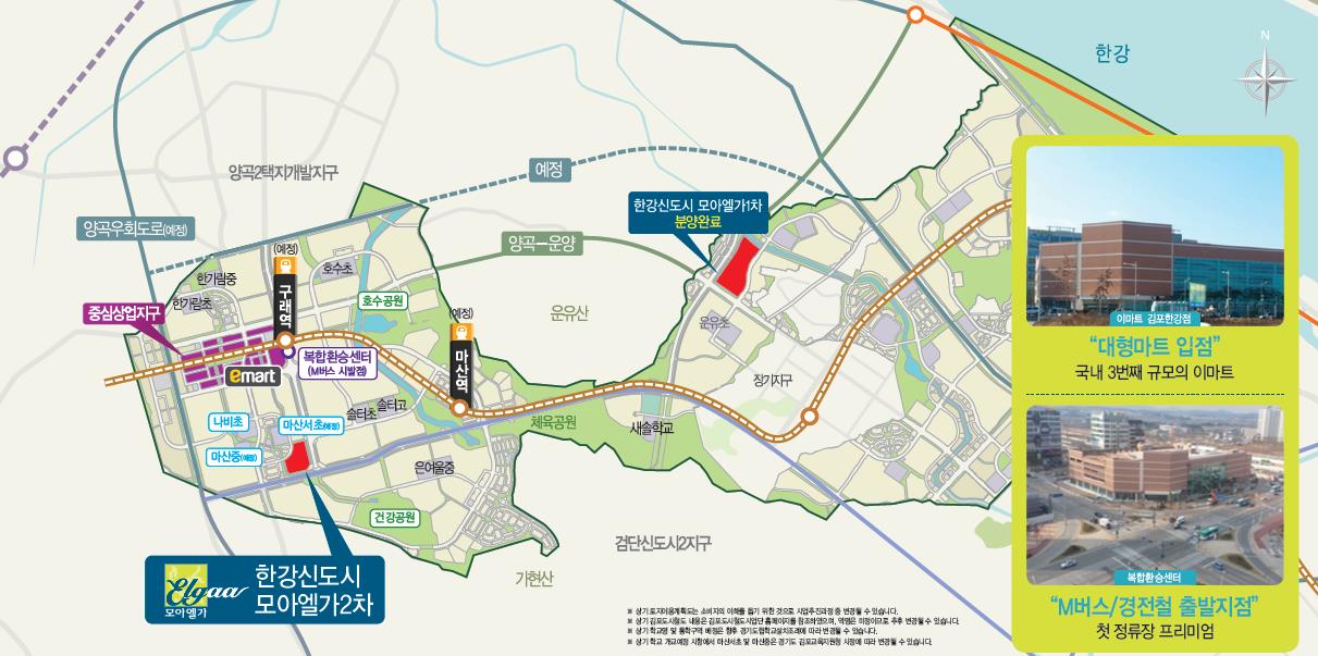 이 밖에도, 김포 도시철도 구래역(가칭)과 M버스 복합환승센터가 5분 정도 거리에 위치하고 있어 서울로의 진출입이 수월할 전망이며, 이마트가 직선거리 600m 거리에 위치해 있다. 또한, 중심상권이 주변에 위치해 있어 생활 인프라의 편의성도 갖추고 있다.