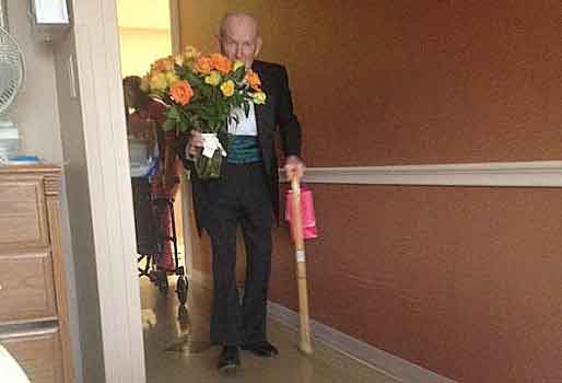 할아버지는 멋지게 턱시도를 차려입고 커다란 장미 꽃다발과 초콜릿을 품에 안고 병원으로 향했다.