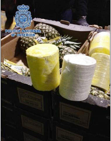 중미의 한 국가에서 스페인으로 건너간 컨테이너는 얼핏 보면 평범한 과일 컨테이너 같았다. 도어를 열자 신선한 파인애플이 가득했다.