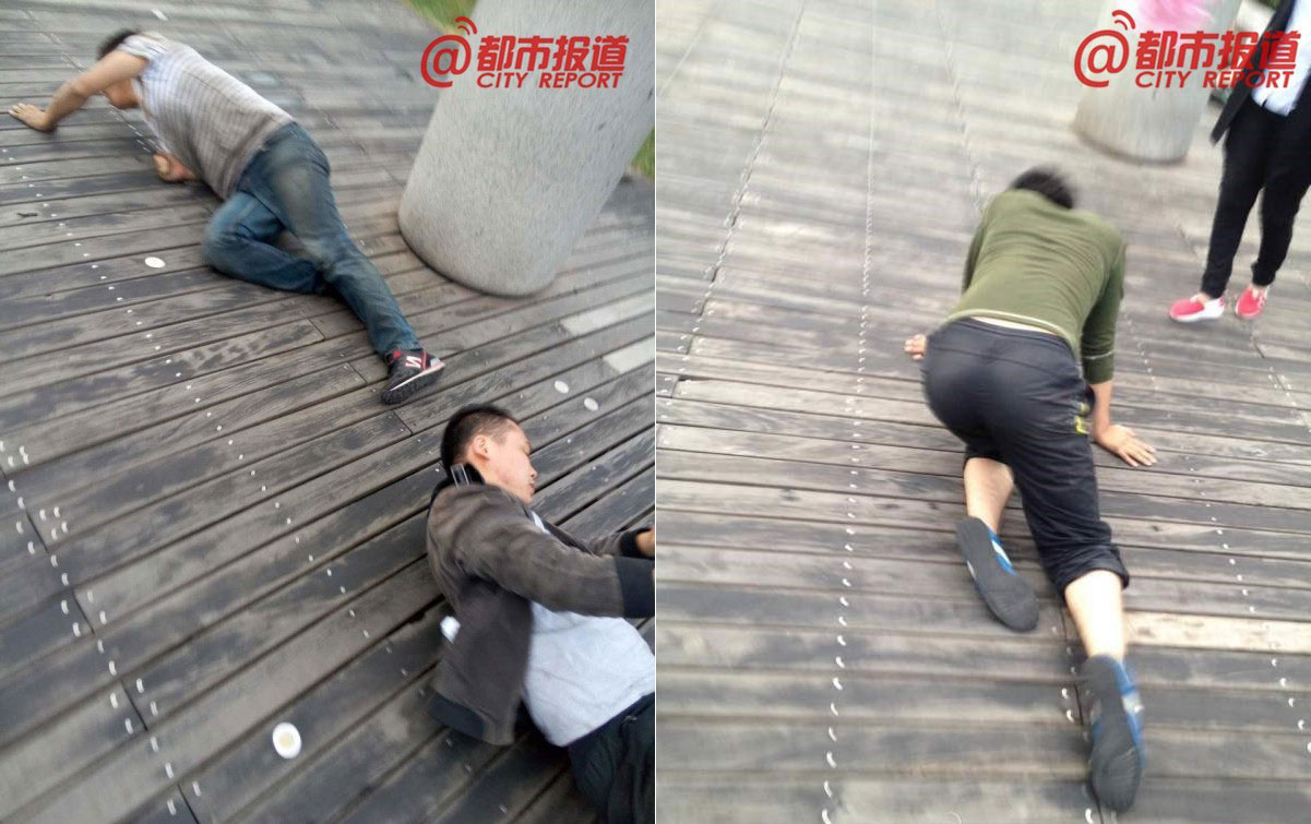 중국 도시보도 등 현지 언론의 3일자 보도에 따르면 지난 2일 허난성 정저우시의 한 공원에서는 30~40대로 보이는 남녀 수 명이 호수를 끼고 있는 공원 바닥에서 무릎 또는 등으로 기어가는 모습이 행인들의 눈길을 사로잡았다.