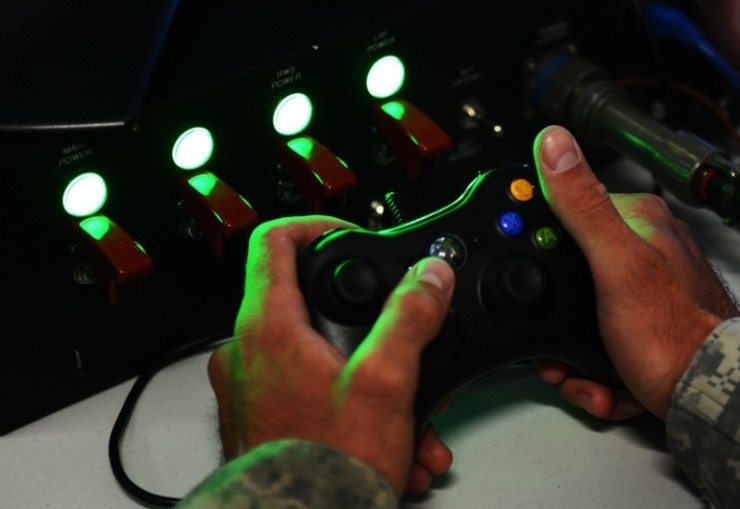 맨 위의 사진에서 미 육군 142 전투 지원 대대의 병사가 손에 쥐고 있는 것은 분명히 게임기를 위해 제작된 게임패드이다. 그렇다고 이 병사가 지휘실에서 남몰래 게임을 즐기는 것은 아니다. 사실 이 장면은 타워 호크 시스템(Tower Hawk System)이라는 원격 조종 무장 시스템을 조종하는 모습이다.
