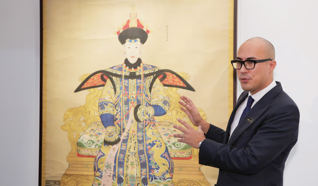 순혜황귀비의 유일한 전신 초상화인 이 작품은 이탈리아 밀라노 출신으로 청나라의 궁정화가가 된 낭세녕(郞世寧, 주세페 카스틸리오네)이 그린 것으로, 베이징 구궁박물관 컬렉션에 포함되지 않는 것이라고 니콜라스 차우 소더비 아시아 부회장은 설명했다.