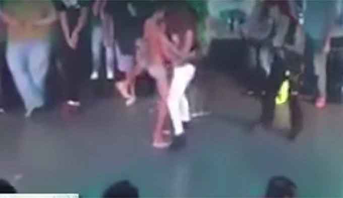 누군가 클럽에서 찍은 문제의 동영상에는 젊은 여성이 자신의 파트너로 보이는 남자에게 유사성행위를 하고 있다.