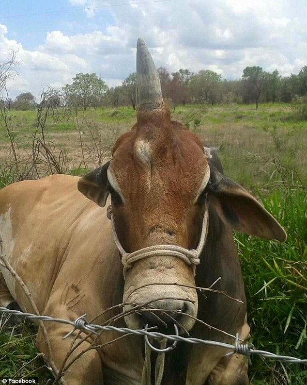 전설 속 동물 유니콘처럼 이마 한가운데 커다란 뿔 하나가 있는 황소가 발견돼 화제가 되고 있다.