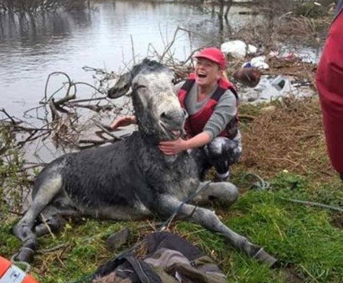 아일랜드의 한 홍수 피해 지역에서 구조된 당나귀 한 마리가 자신이 가까스로 살아났음을 아는 듯이 사람들을 향해 미소 짓는 모습이 공개돼 화제가 되고 있다.