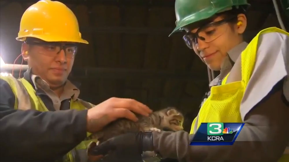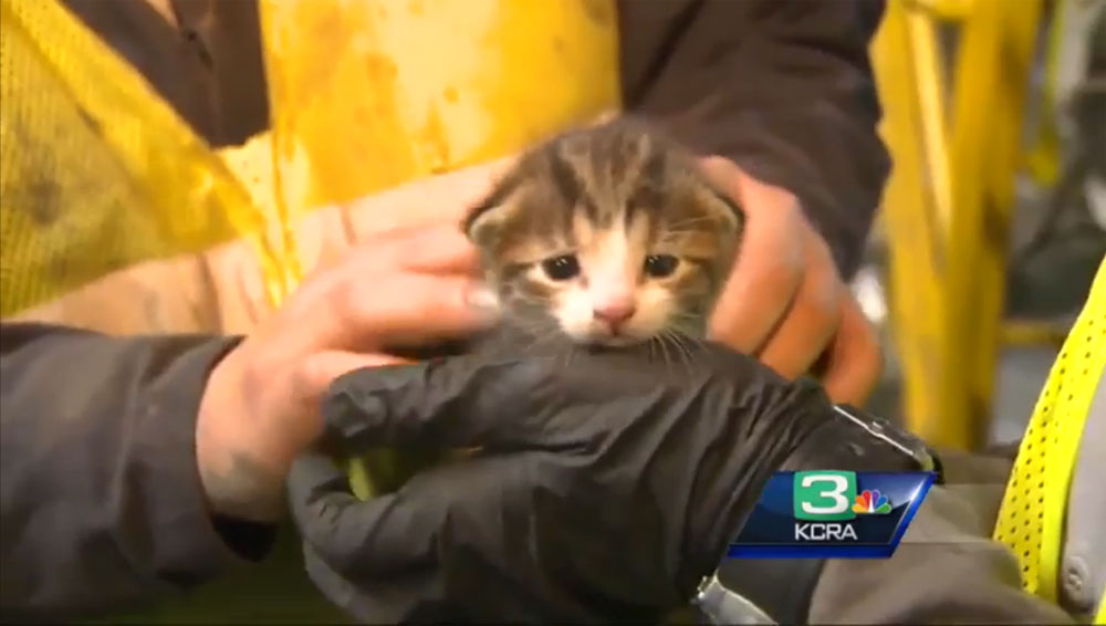 15일(현지시간) 미국 폭스 뉴스 등 외신들은 캘리포니아 주 골트 시 재활용 쓰레기 처리장에서 쓰레기더미에 묻혀 있던 새끼고양이 한 마리가 직원의 눈에 띄어 다행히 목숨을 구했다고 보도했다.