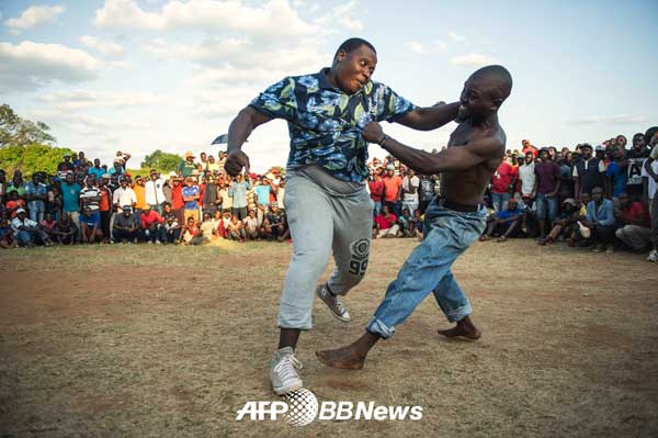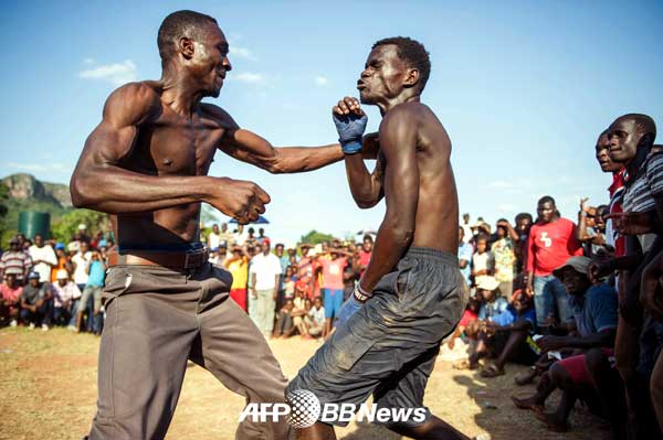 지난 26일(현지시간) AFP통신은 남아프리카 공화국 북부 림포포 지역에서 벌어진 전통적인 격투시합을 사진으로 보도했다. 현지에서 무상웨(Musangwe)로 불리는 이 시합은 벤다족(Venda tribe)의 오랜 전통으로 1800년대부터 시작된 것으로 알려져있다.