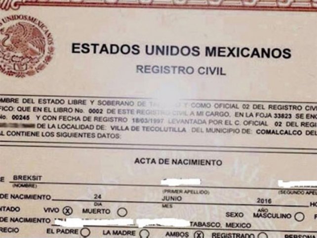 페이스북에 공개된 출생신고증명을 보면 아기는 6월 24일 멕시코 타바스코에서 태어났다. 영국의 EU 탈퇴, 즉 브렉시트가 결정된 날이다.