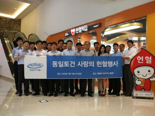 이번 행사에 참여한 동일토건 기술본부 허두영 상무는 “우리나라 혈액보유량이 크게 부족한 상황은 아니지만 메르스 등 혈액사용량이 지속적으로 늘어 국민들의 참여가 필요한 것으로 안다”며 “원칙과 성심을 회사 이념으로 하는 동일토건은 ‘봉사를 실천하며 사회에 필요한 사람이 되는 것’도 중요하게 생각해 사회에서 필요로 하는 일에 봉사한다는 마음으로 이번 행사를 마련하게 됐다”고 밝혔다.