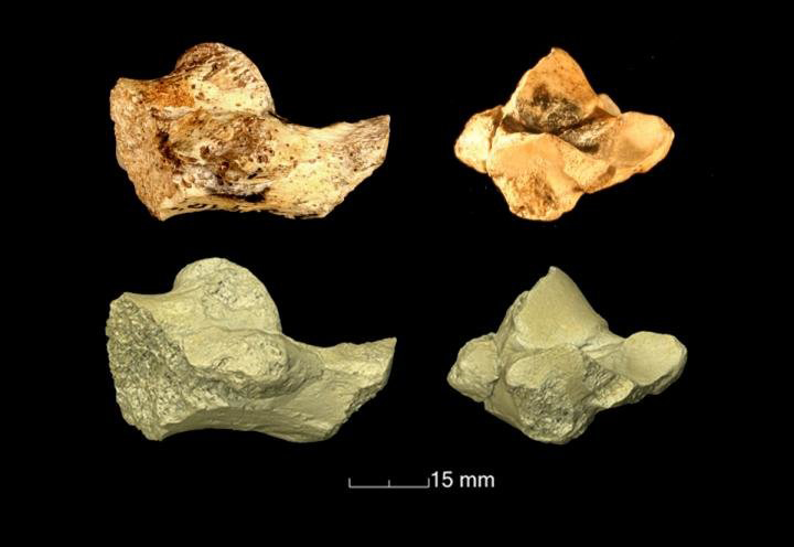 연구팀은 스테르크폰테인 동굴에서 발견한 이 스펀지처럼 생긴 발꿈치뼈의 구조와 방향을 분석해 이 초기 인류가 침팬지나 인류보다 고릴라와 더 비슷하다는 것을 입증했다.