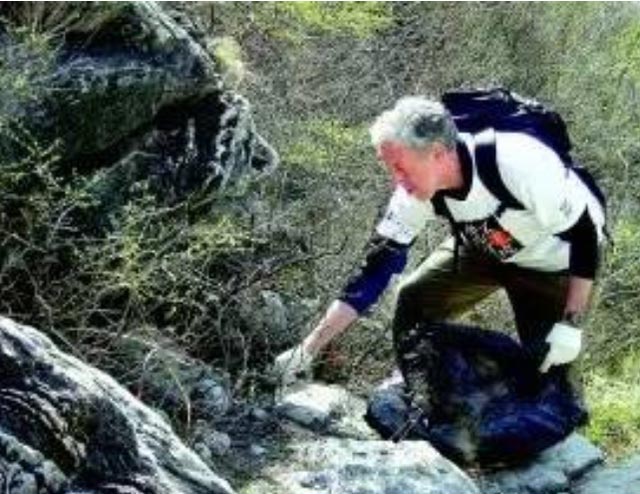 한번은 중국인 사진작가들이 촬영을 마친 후 음식 포장지를 버리는 것을 보고, 그들이 버린 쓰레기를 주워 담았다.