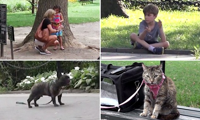 영국 일간지 데일리메일 취재팀이 미국 뉴욕에서 흥미로운 실험을 실시했다. 유동인구가 많은 미국 뉴욕시 워싱턴스퀘어공원에 6살짜리 남자아이와 여자아이, 그리고 고양이 한 마리와 개 한 마리를 동시에 홀로 방치한 채 사람들의 반응을 살핀 것이다.