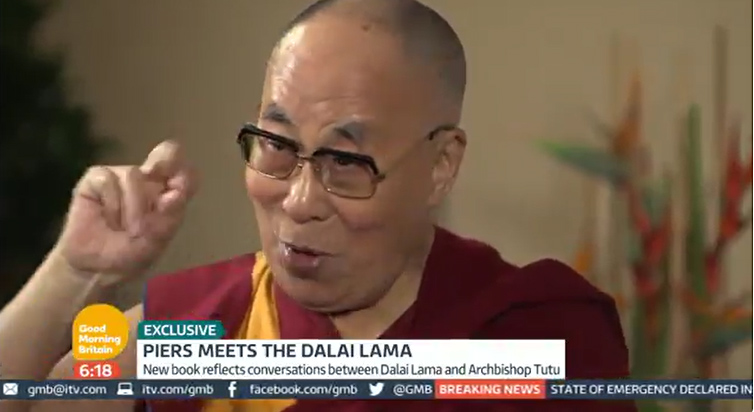 달라이 라마는 지난 22일(현지시간) 영국 텔레비전 프로그램인 '굿모닝 브리튼'에 출연해 CNN 뉴스 앵커 피어스 모건과 대담을 가지면서 손을 들어 트럼프 특유의 우스꽝스러운 헤어스타일을 흉내내고, 트럼프가 말할 때 특유의 입술을 모으는 동작까지 따라 하기도 했다.